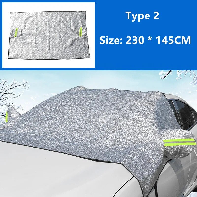 Frost Guard & Multi-use for Winter: This windshield cover is made of durable fabric which can protect from snow, frost, ice, sleet, slush, hail, snowstorms as well as another winter bad weather. Resistant to UV rays and dust, can be used as a sunshade as well, keeping leaves on the cover.High-quality Material: Made of high-quality aluminum film and cotton. The thicker and more durable design makes the windshield snow cover more suitable for your car and gives your car good protection on windy, rainy, and snowy days.